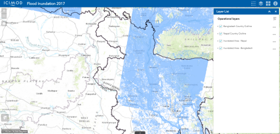 A web-based application using ArcGIS Online, a cloud-based mapping platform, provides a synoptic overview of inundated areas in northern Bangladesh and India and southern Nepal as incessant rainfall and resulting floods and landslides have adversely affected the region. The application can be viewed here.